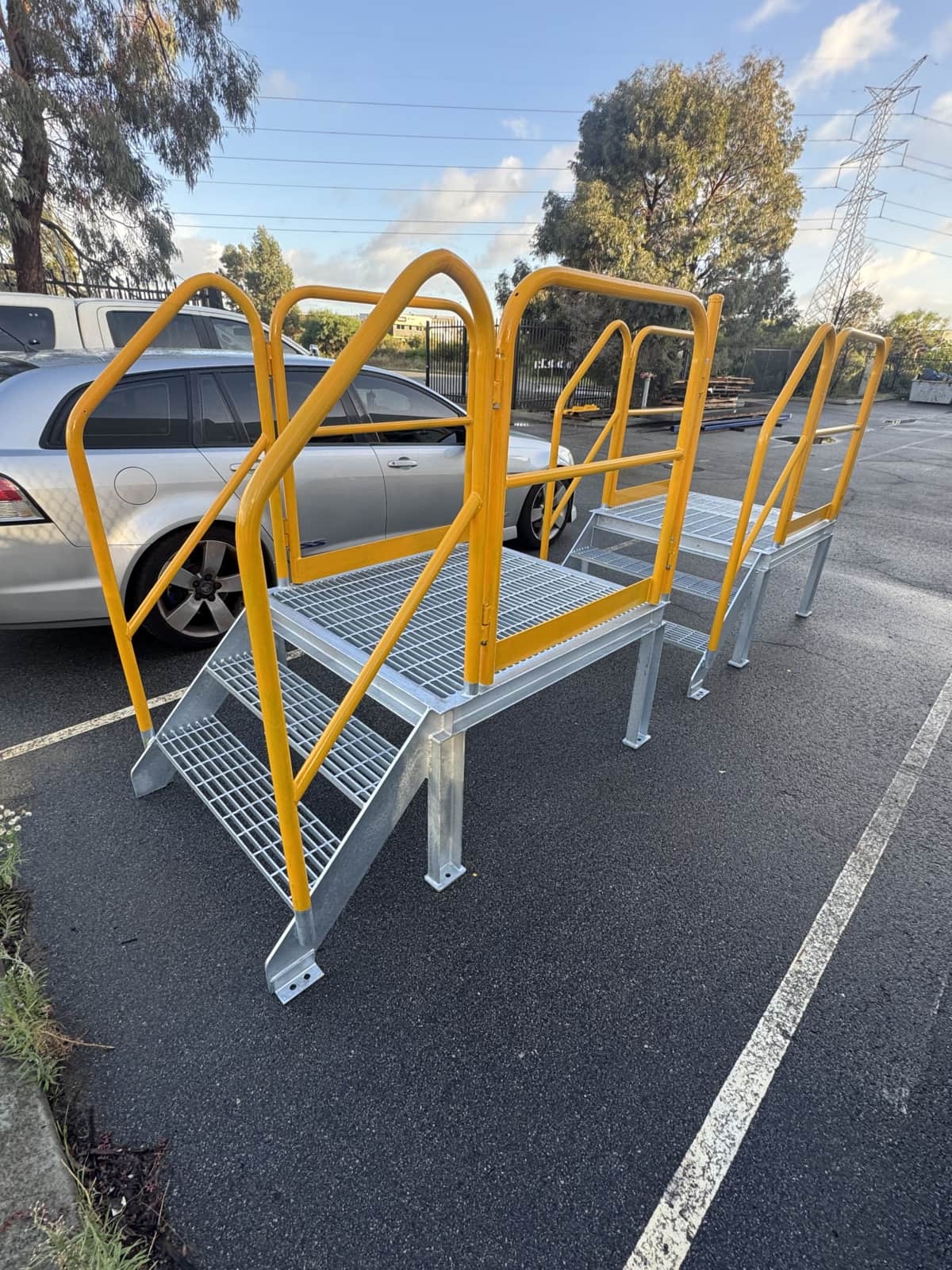 Shipping containers are incredibly versatile. Storage units. Workshops. Offices. Countless other applications. The challenge is that containers get positioned differently depending on site constraints, access requirements, and how they’re being used—sometimes facing forward, sometimes sideways, sometimes in configurations that change as site layouts evolve. Traditional access stairs work fine if the container never moves and always faces the same direction, but they become limitations when containers need to be repositioned or when site layouts change and suddenly your stairs are facing the wrong direction. Our client needed access platforms that could adapt to different container orientations without requiring multiple sets of stairs or complex modifications that would be expensive and time-consuming.