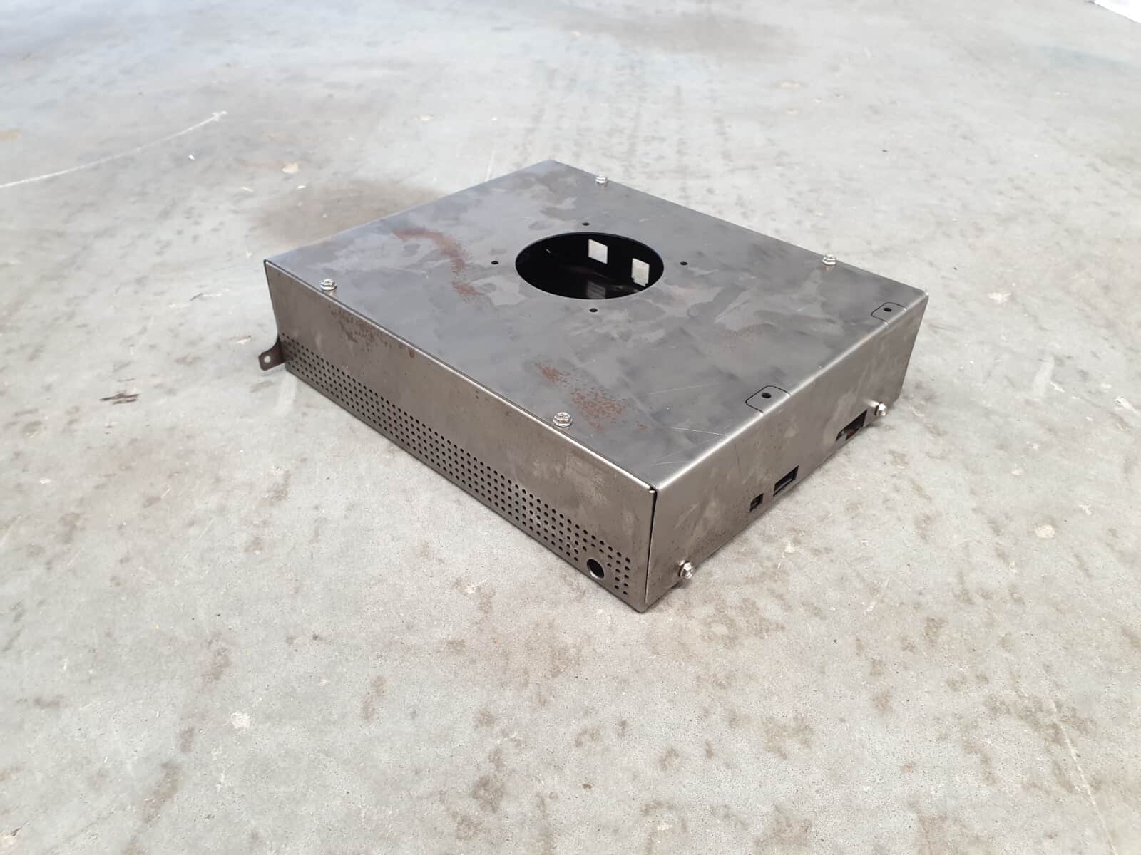 We designed and fabricated custom sheet metal enclosures that combine protective housing with intelligent airflow engineering. The challenge wasn’t simply keeping dust out—anyone can build a sealed box. The real engineering challenge was managing the thermal loads that build up inside while maintaining easy access for maintenance and presenting the professional appearance that Vitruvian’s application demanded.