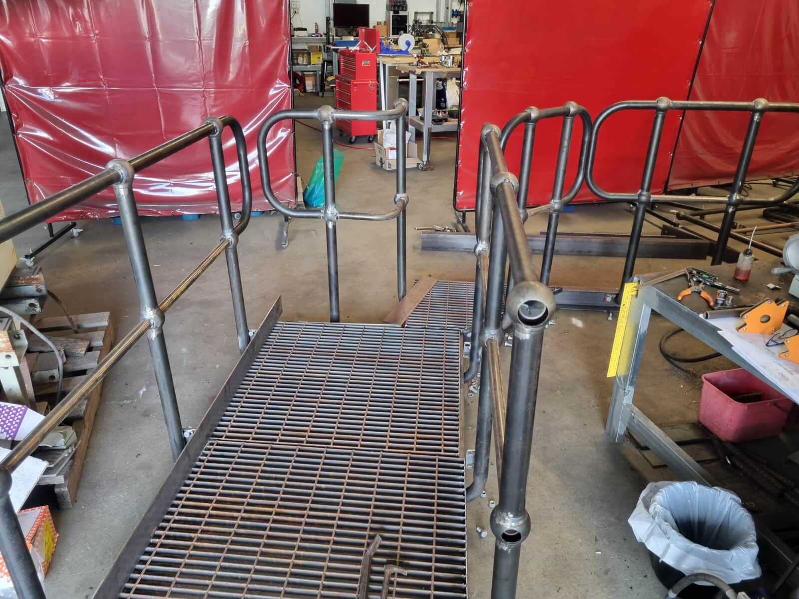 This sequential approach means the platform is never in an unsafe intermediate state where workers are exposed to fall hazards. Each module that’s installed contributes to the growing structure, and the handrails are integrated as the platform develops rather than being added at the end. Workers always have secure footing and fall protection as they assemble subsequent modules, because safety can’t be compromised during installation any more than it can be compromised during operation.